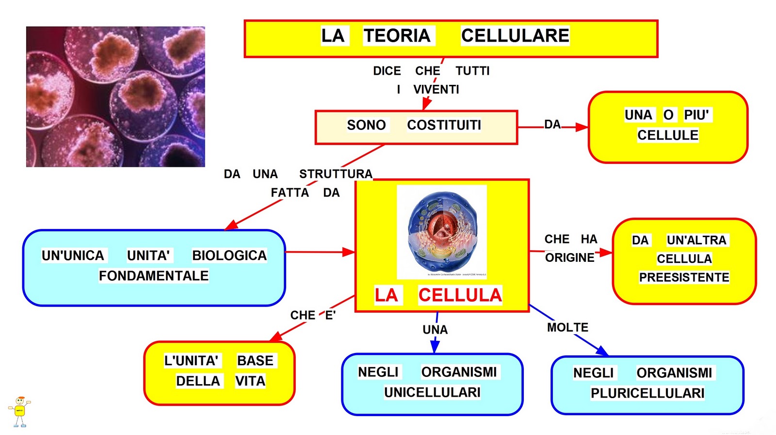 - la cellula rappresenta l’unità biologica fondamentale della vita e ha origine da un’altra cellula preesistente;