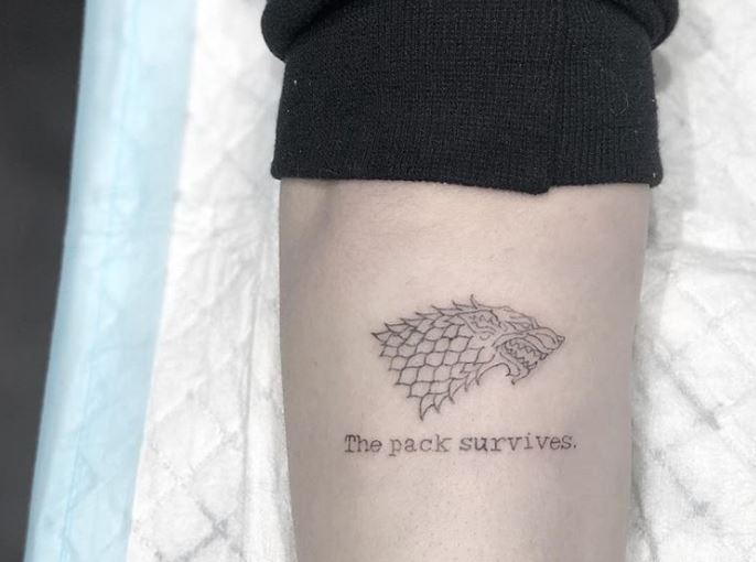 Qualche settimana fa Sophie Turner, che nella saga interpreta Sansa Stark, ha mostrato un nuovo tatuaggio sull’avambraccio destro che ha fatto destare parecchi sospetti. A pubblicarlo su Instagram è stata Lauren Winzer, dello studio di tatuaggi Hunter and Fox Tattoo Studio di Sydney: si tratta del disegno di un lupo accompagnato dalla scritta “The pack survives” ovvero “Il branco sopravvive“. L’animale si riferisce alla sua casata di appartenenza nella serie tv, quella di Grande Inverno guidata da Ned Stark, e la citazione proviene dallo slogan della casata: “Quando la neve cade e i venti bianchi soffiano, il lupo solitario muore, ma il branco sopravvive”. Il tatuaggio è, quindi, un chiaro riferimento al destino di determinati personaggi della serie o è una semplice citazione?
